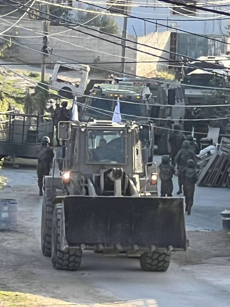 وتزامنا مع ذلك دفعت قوات الاحتلال بتعزيزات عسكرية من حاجز الحمرا برفقة جرافة مجنزرة (D9) باتجاه المخيم، حيث تمركزت لفترة من الزمن على الشارع الرئيس المؤدي إلى المخيم من الجهة الجنوبية، وأحدثت أضرارا فيه قبل الدخول إلى المخيم واقتحامه.