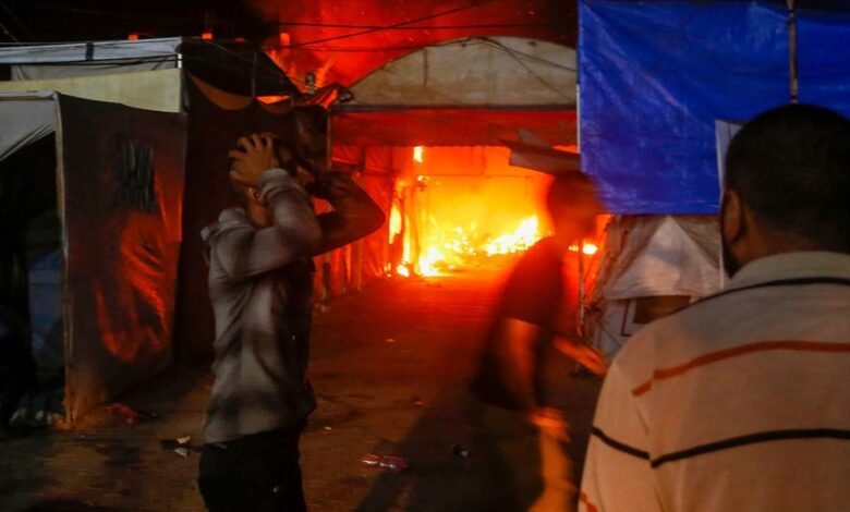 وأسفر الاستهداف أيضًا عن اشتعال النيران في 6 خيام مجاورة.