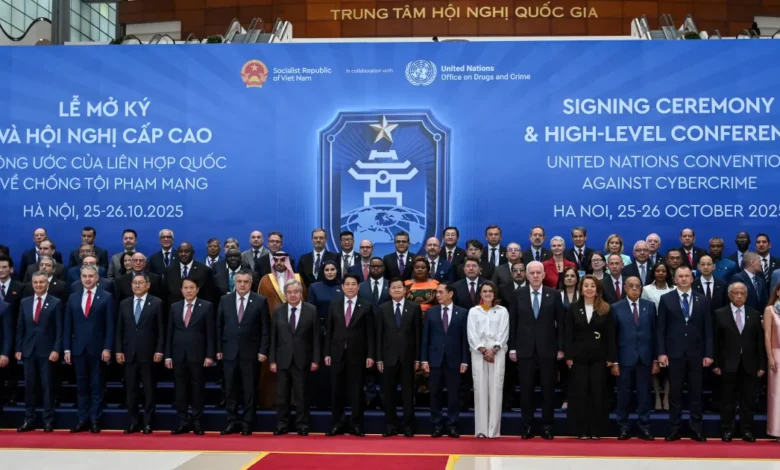 وقّعت دولة فلسطين اليوم السبت، على اتفاقية الأمم المتحدة لمكافحة الجرائم الإلكترونية، وذلك خلال الحفل الرسمي الذي استضافته العاصمة الفيتنامية هانوي، بحضور رئيس جمهورية فيتنام الاشتراكية لوونج كوونج، والأمين العام للأمم المتحدة أنطونيو غوتيريش، وعدد كبير من رؤساء الوفود، وممثلي الدول، والمنظمات الدولية.