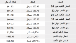 وجاء متوسط أسعار سوق الذهب، لـ عيارات الذهب الأخرى لليوم الخميس 03.3.2022 كما يلي: