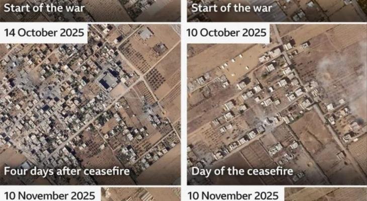 أظهرت صور أقمار اصطناعية أن جيش الاحتلال نفذ عمليات هدم منهجية طالت مئات المباني شرقي مدينة غزة، منذ دخول اتفاق وقف إطلاق النار في 11 أكتوبر/ تشرين الأول الماضي.