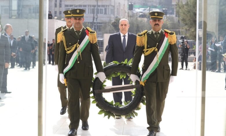 إحياء الذكرى السنوية الحادية والعشرين للرئيس الراحل ياسر عرفات بوضع أكاليل الزهور على ضريحه