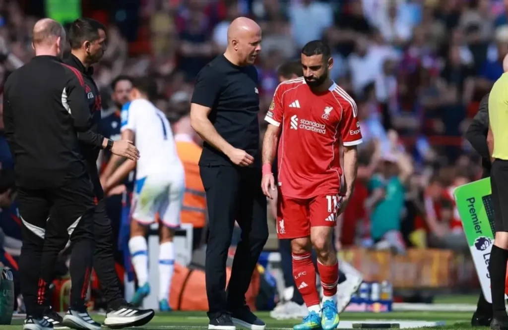 وسقط صلاح على أرضية الملعب في الدقيقة 58 بعد سباق سرعة مع أحد مدافعي كريستال بالاس، قبل أن يمسك بالعضلة الخلفية ويطلب التبديل.