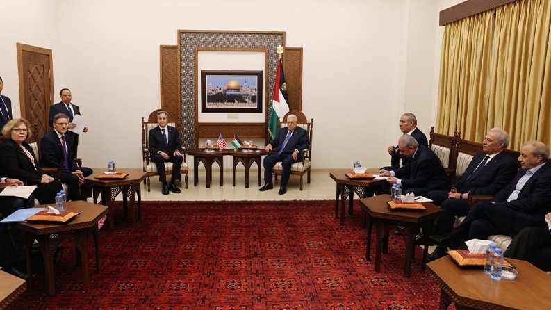 اجتماع الرئيس محمود عباس مع وزير الخارجية الأميركي أنتوني بلينكن في رام الله ظهر اليوم الأربعاء.