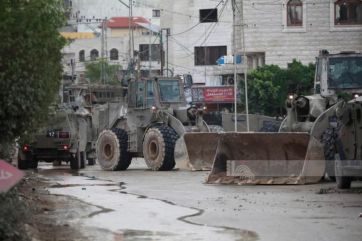 وشرعت جرافات الاحتلال بتجريف شارع نابلس المحاذي لمداخل المخيم، بدءا من دوار الشهيد سيف أبو لبدة، وشارع حارة المسلخ وتدمير البنية التحتية المدمرة من الاقتحامات السابقة، وتعمدت التشويش على شبكات الانترنت في المنطقة.