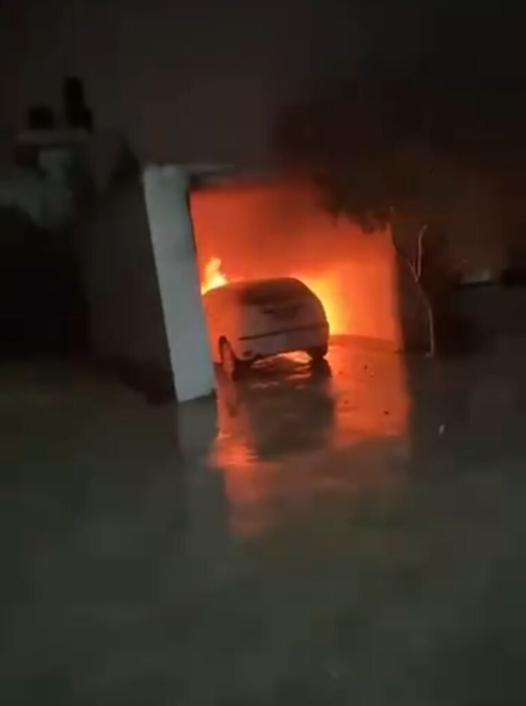 وأفادت مصادر محلية، بأن عددا من المستوطنين داهموا البلدة القديمة في عين يبرود، وأحرقوا المركبتين، وخطوا شعارات عنصرية، قبل أن يتصدى لهم المواطنين وينسحبوا.