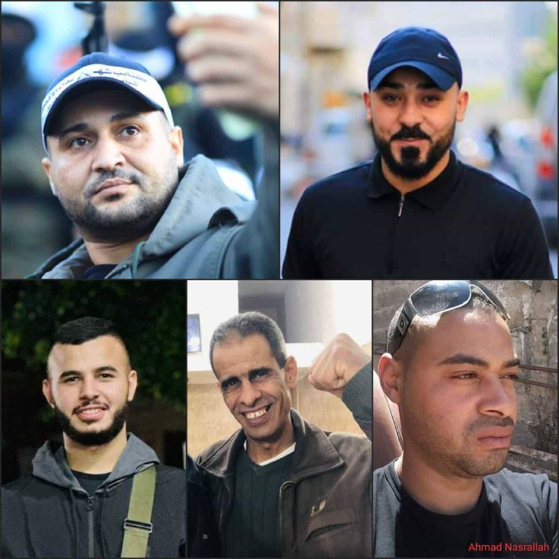 وذكرت المصادر، أن الشهداء هم عدي الزيات، ورامي الشوملي، وأحمد سليط، وبسام الشافعي، ومحمد أبو عنيين.