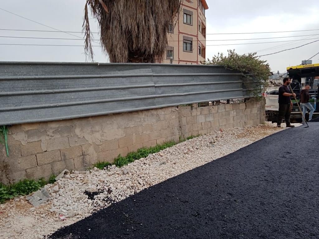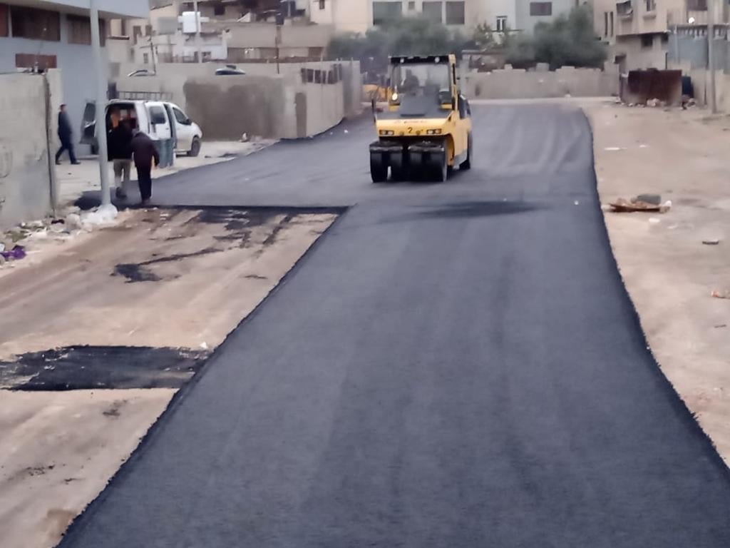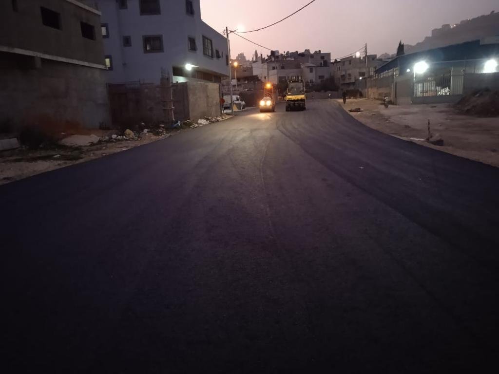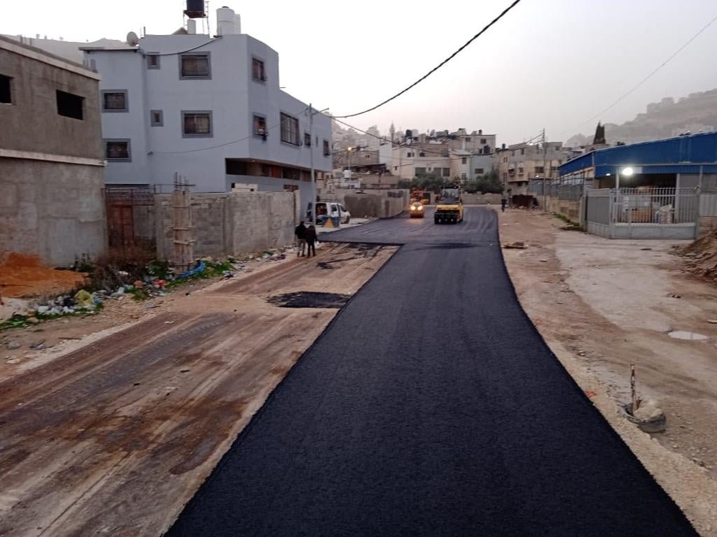 جانب من أعمال تعبيد بلدية نابلس الشارع المحاذي لمخازن الاتصالات والواصل الى مخيم بلاطة