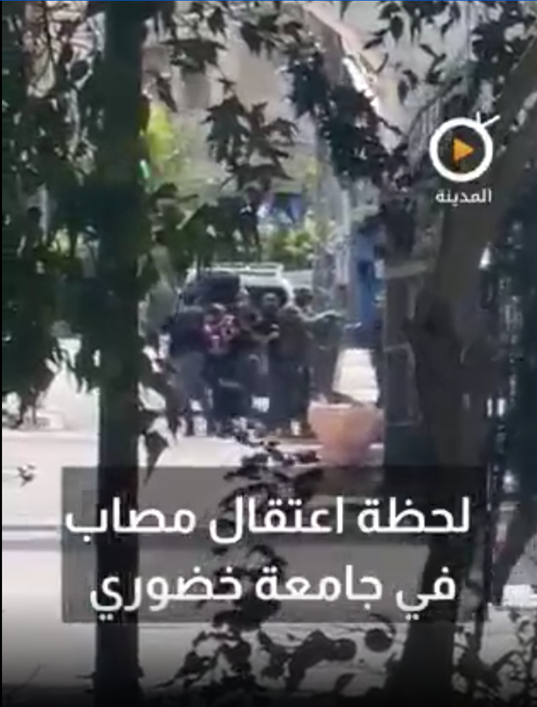 فيديو/ لحظة اعتقال الشاب المصاب في جامعة خضوري