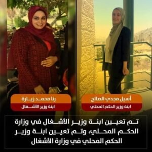 وكانت وسائل التواصل الاجتماعي تداولت أن الحكومة الفلسطينية قامت بعيين كلا من ابنة وزير الأشغال محمد زيارة مدير C استثنائيًا بوزارة الحكم المحلي وهي من سكان قطاع غزة، وتوظيف ابنة وزير الحكم المحلي مجدي الصالح استثنائيًا في وزارة الأشغال وهو ما اوضحه الوزيران في تصريحاتهما الصحفية.