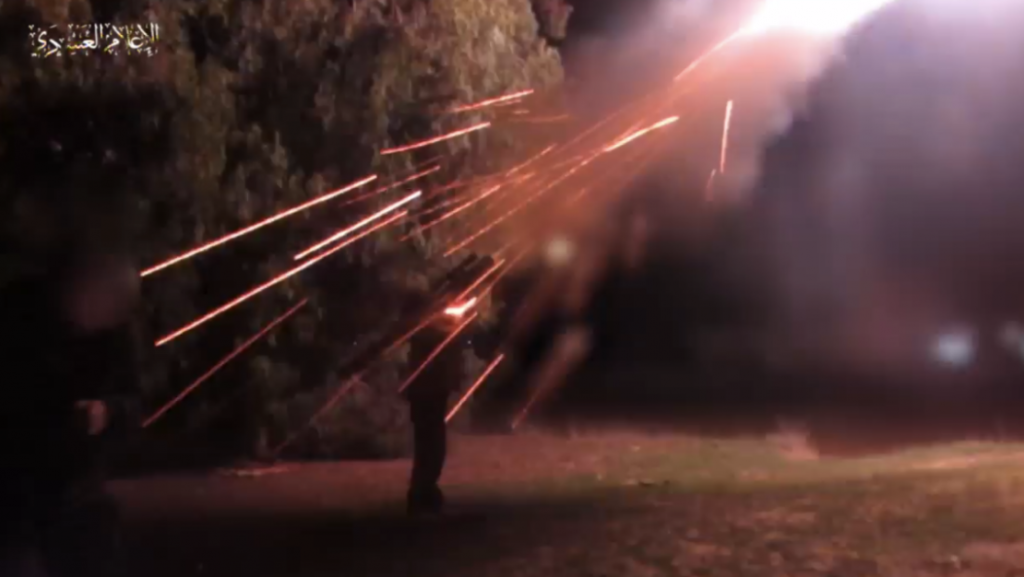وأظهر المقطع المصور الذي نشرته الكتائب مقاوماً، من وحدات “الدفاع الجوي”، يطلق صاروخاً مضاداً للطيران من على الكتف.