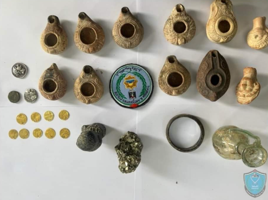 قبضت الشرطة على شخص بتهمة حيازته 26 قطعة أثرية في نابلس.