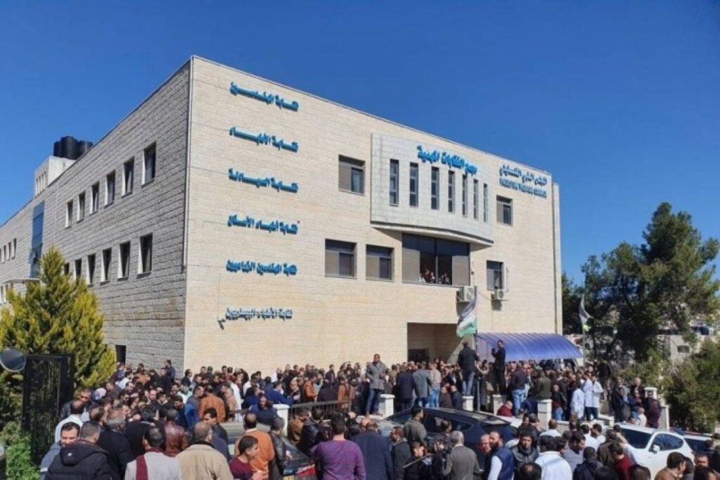 واجتمعت النقابات المهنية اليوم، لمتابعة القضايا النقابية المطلبية وعلى رأسها استمرار الخصومات على رواتب الموظفين وعدم تلبية مطالبهم العادلة والتي أثرت بشكل خطير على قدرتهم على تقديم خدماتهم لأبناء شعبنا، بحسب ما جاء في البيان.